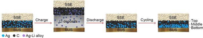 Schematic diagram of Lithium plating-stripping on the current collector with a Ag-C nanocomposite layer during charging and discharging processes[155 ] Fig. 12 ![]()