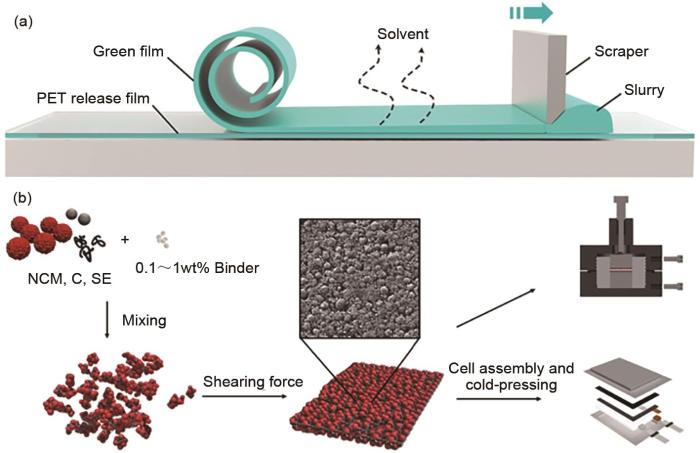 174 ]; (b) Schematic diagram for preparation of free-standing all-solid state cathode dry-film based on NCM and sulfide electrolyte