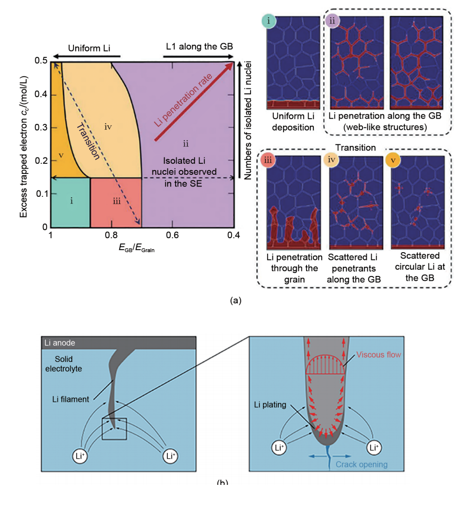 | 图11 无机固态电解质中锂枝晶的生长:(a) 锂在晶界中的渗透机制[ |