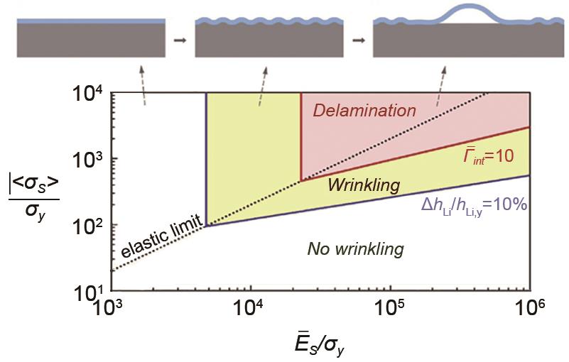 | Fig. 5 SEI failure map based on analytical models of wrinkling and delamination[ |