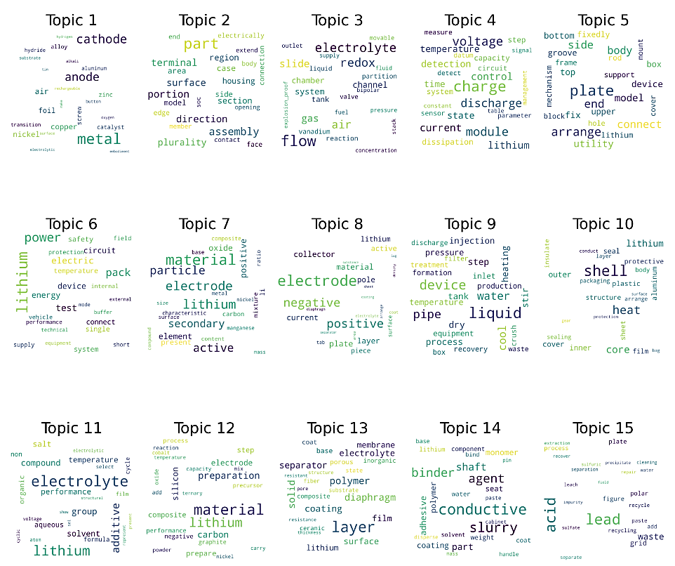 Fig. 7. Topic word cloud diagram of electrochemical energy storage battery technology |