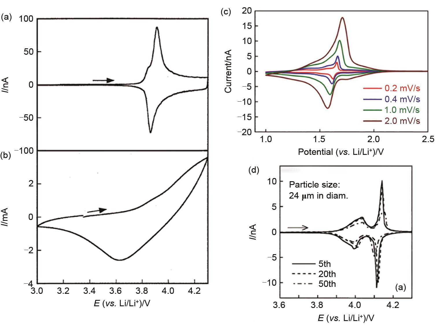| Fig. 18 CV curves of LiCo0.8Mn0.2O2 single-particle electrode (a) and composite electrode (b) [ |